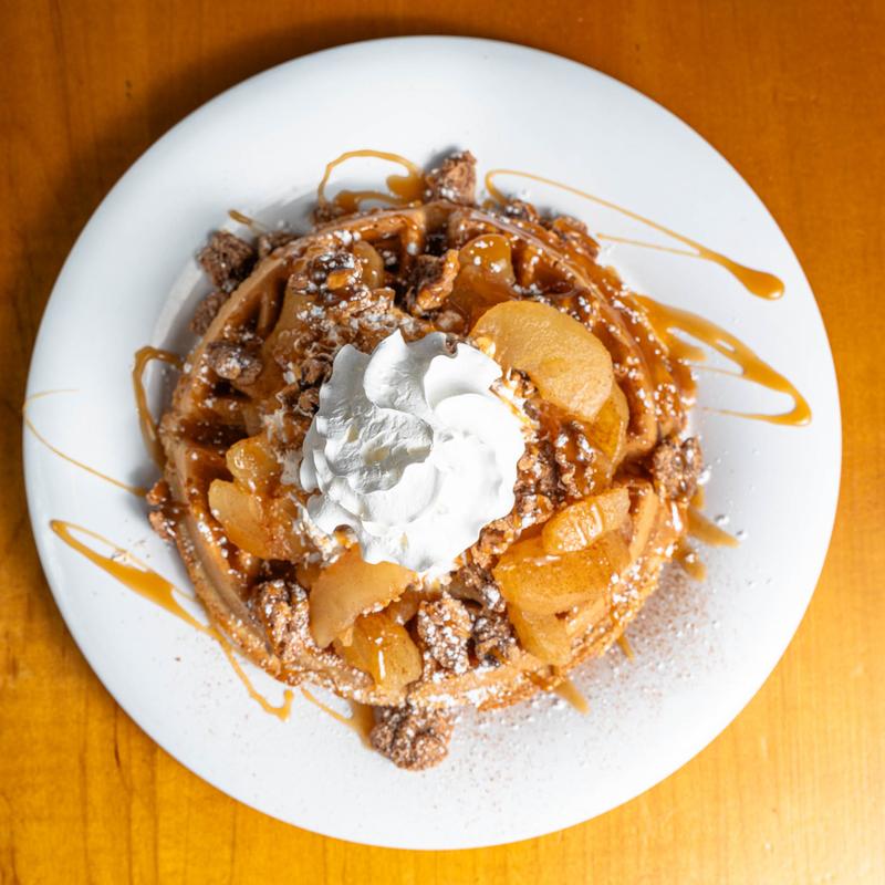 Toppings +$0.75 each: Bananas | Granola | Chocolate Chips | Toasted Coconut | Nutella | Blueberries | Strawberries | Pralines | Cinnamon Apples | Sweet Cream Cheese | Caramel Sauce | Peanut Butter Maple Syrup