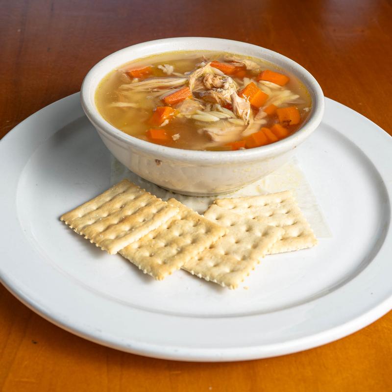 Grilled chicken, chopped greens, grated parmesan cheese & caesar dressing.